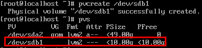 - sdb1을 vg gom에 추가하기위하여 pv 생성.