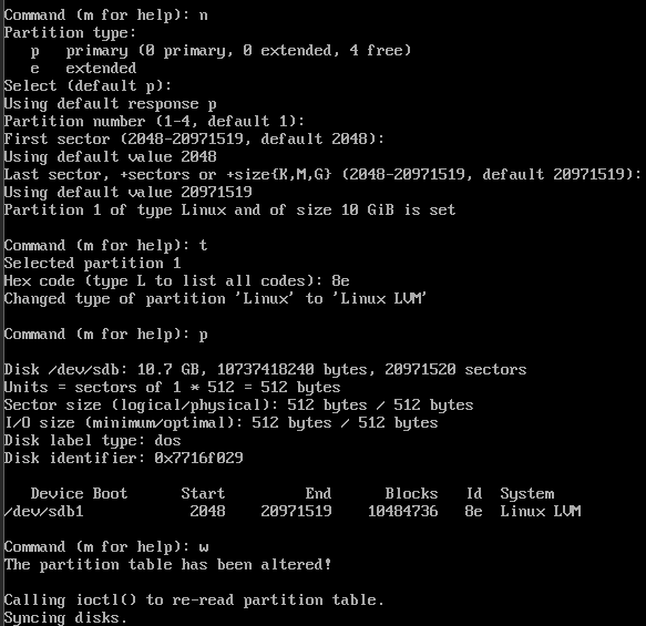 - sdb를 lvm gom에 추가하기위해 lvm id를 가지는 파티션 생성.