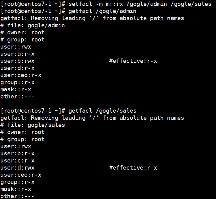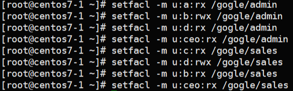 ( 한번에 입력도 가능하다. ex => setfacl -m u:a:rx,u:b:rwx /gogle/admin )