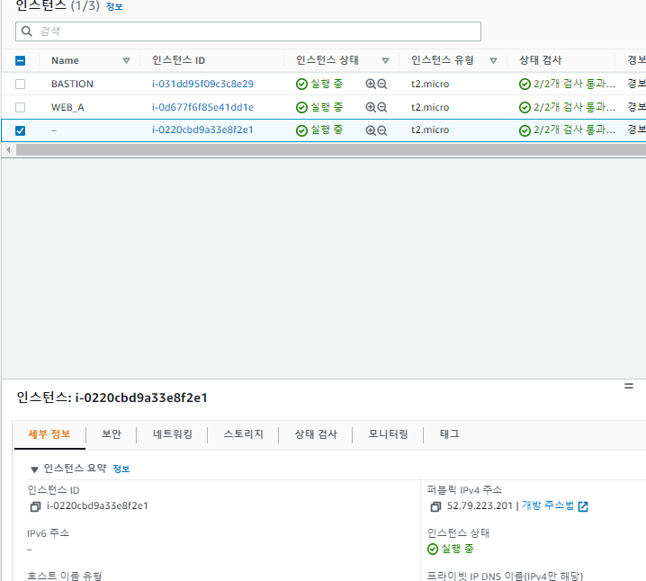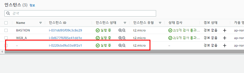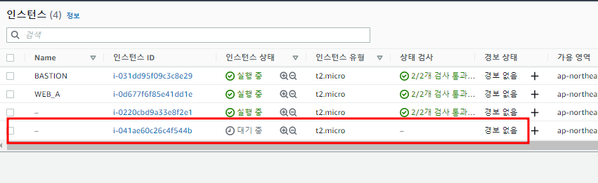 - 인스턴스를 확인하면 새로 생성됨을 보인다.