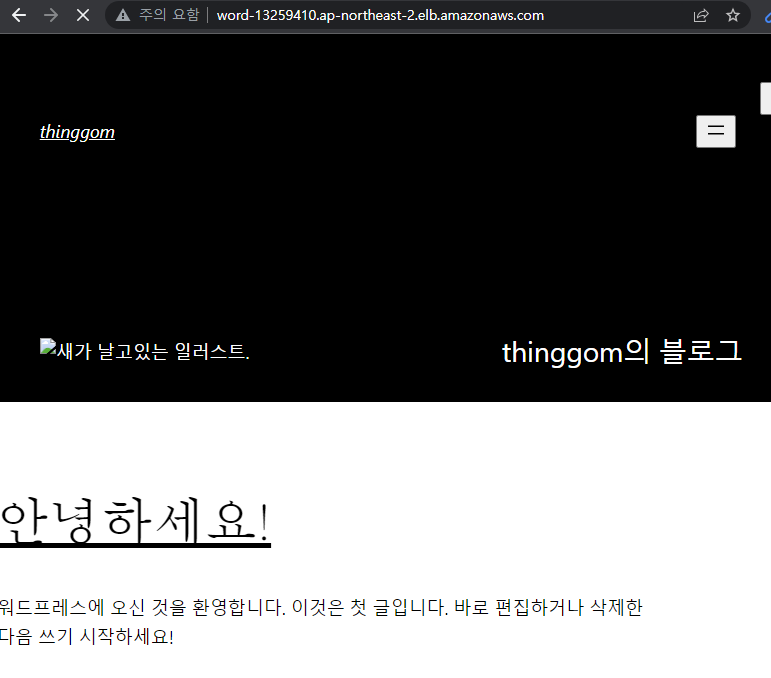 - 로드밸런스 주소로 접속하여 보면 정상적으로 접속됨을 보인다.
