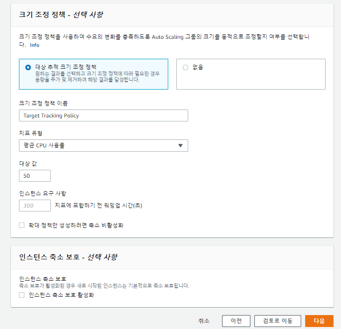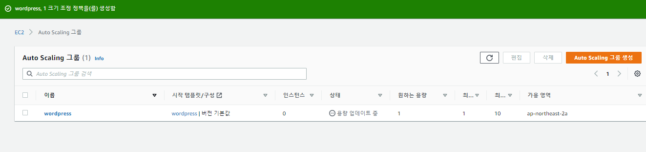 - 위에서 생성한 것을 바탕으로 로드 밸런싱을 생성하여 오토 스케일링을 연결