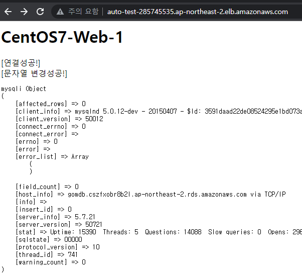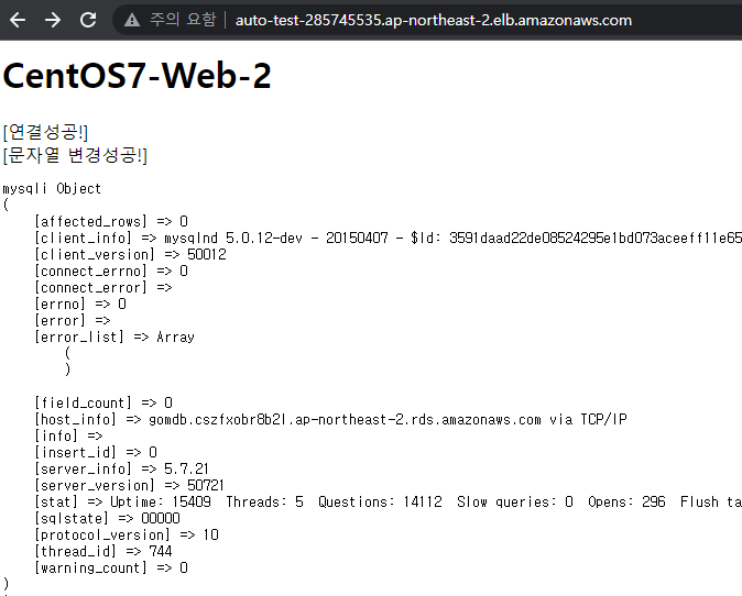 - index.php 파일을 통해 오토스케일링으로 생성된 스크립트와 로드밸런싱이 되는지 확인