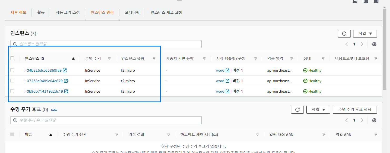 - 부하가 계속되면 새로운 인스턴스가 생성되는 것을 볼 수 있다.