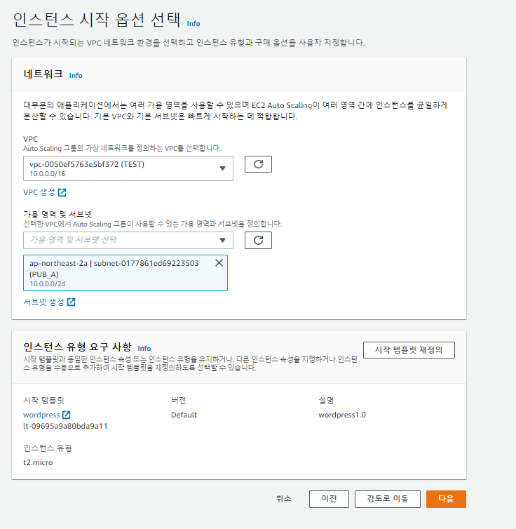 - WEB-A 가용영역 A : PUB 서브넷에 생성 후 worppress 설치