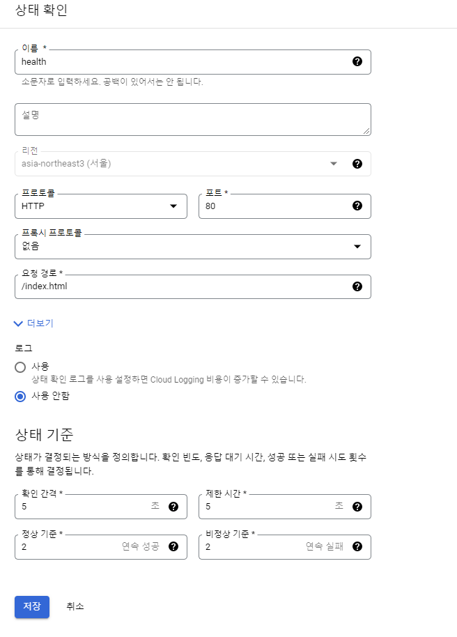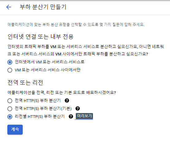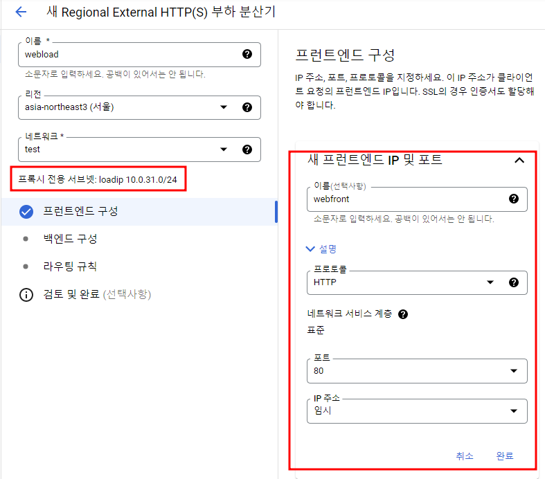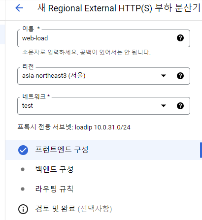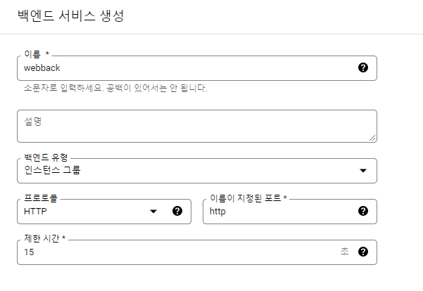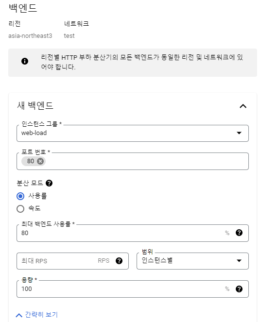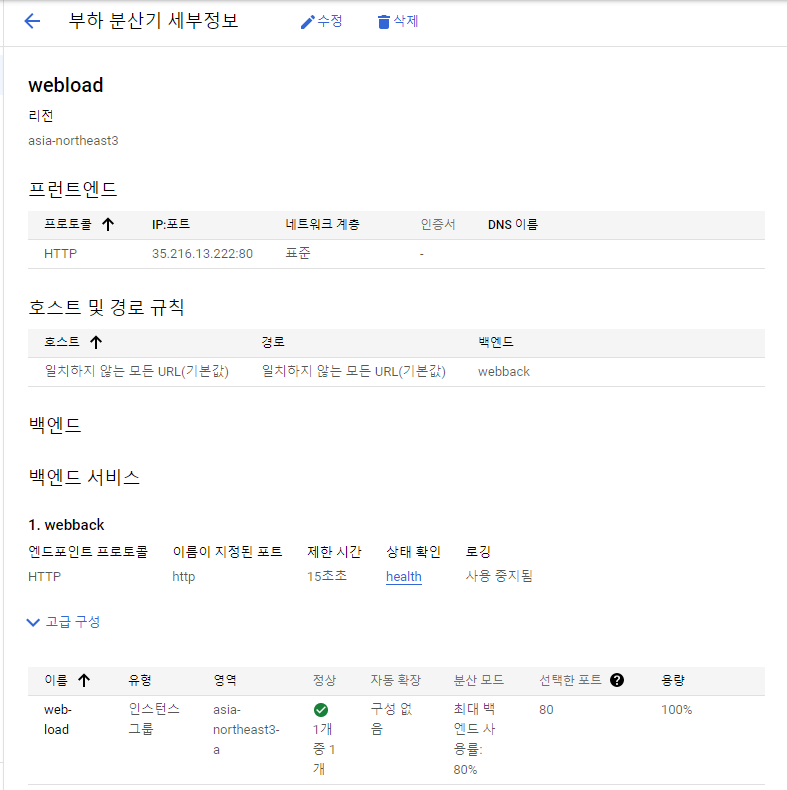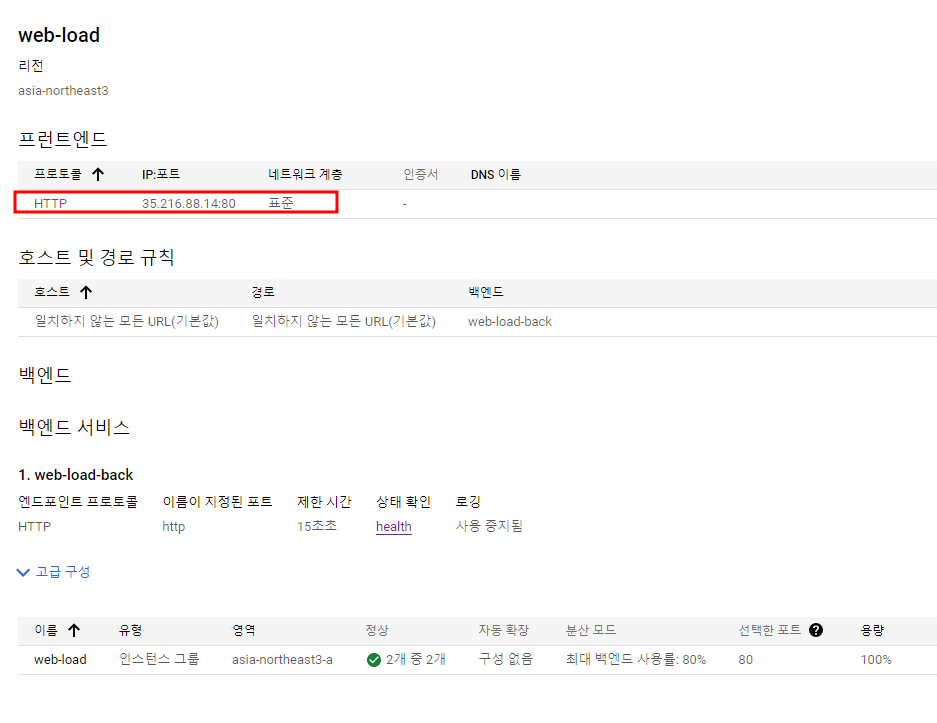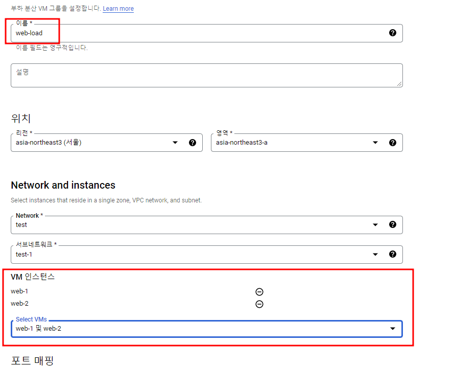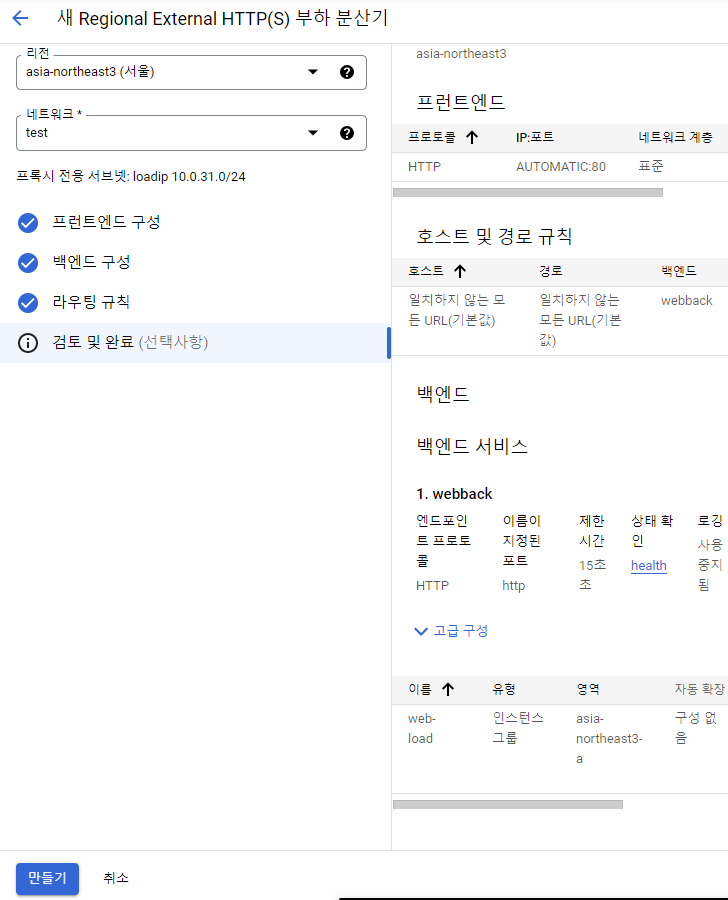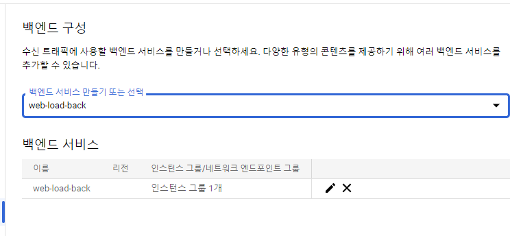 - 생성한 인스턴스 그룹을 사용하여 부하분산 생성