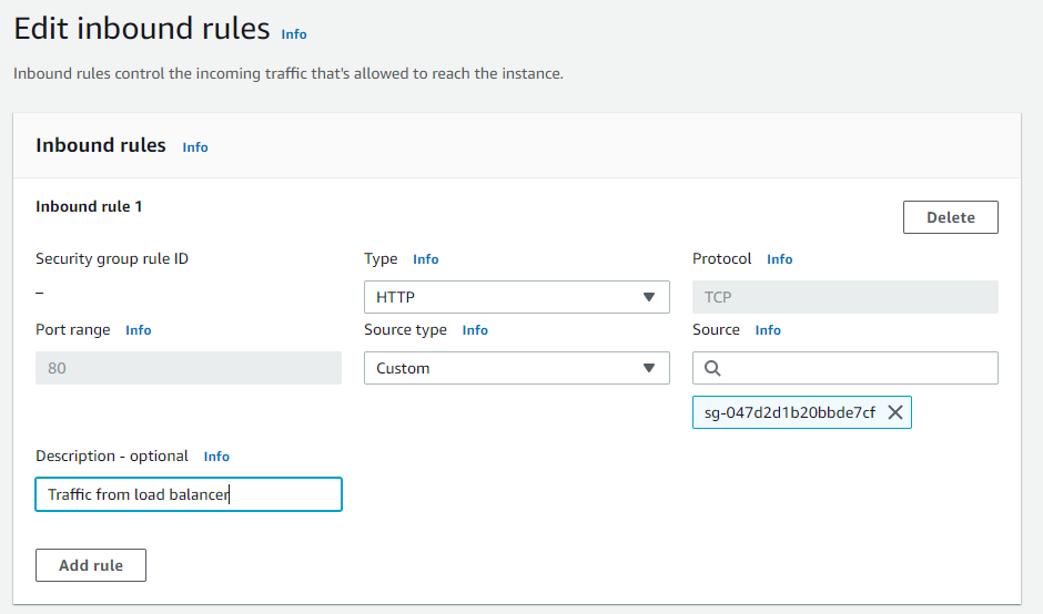 - 각 요청별로 보안 그룹을 생성하며 로드밸런서 보안 그룹 미리 구성