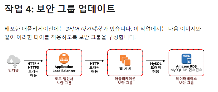 - 로드 밸런서 생성 및 오토스케일링 구성, 보안 그룹을 업데이트하여 3티어 아키텍처 적용
