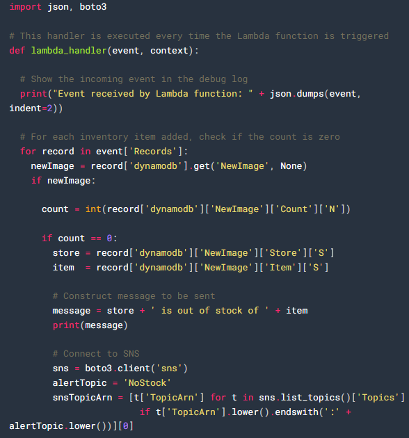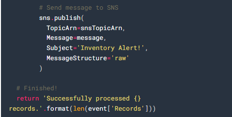 보드앱을 통해 모니터링 -> 두번째 lambda 함수는 재고가 없을 때 알림을 보냄