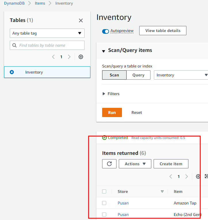 - dynamodb에서 데이터를 확인 => 테이블 확인