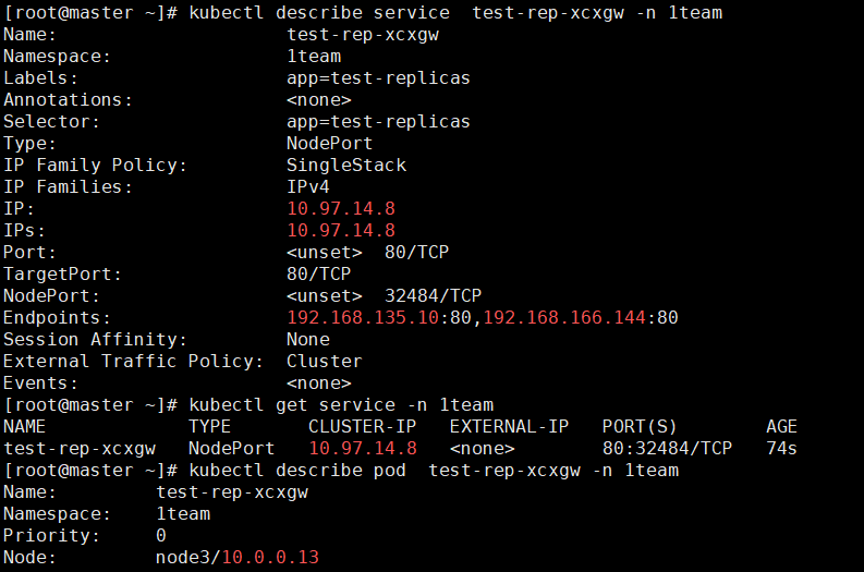 pod 개수를 4개로 늘리고 배치된 node 확인