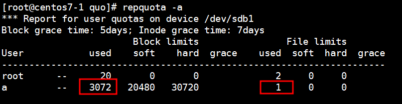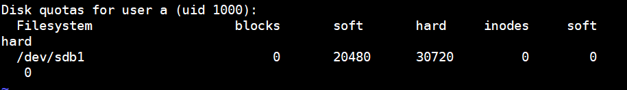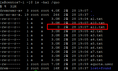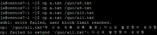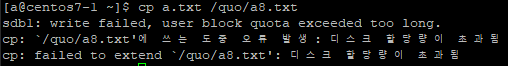 - edquota -u 명령어를 이용하여 a 사용자에게 디스크 할당