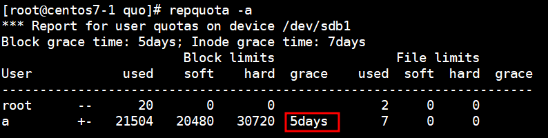 - edquota -t 명령어를 이용하여 유예기간을 설정