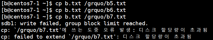 - hard 범위 이상까지 파일을 복사하면 파일 생성이 불가.