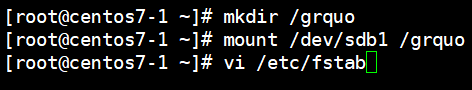 - 그룹 quota에 사용할 grquo 디렉토리 생성 및 마운트, fstab 내용 수정을 통해 지속적인 마운트 가능.