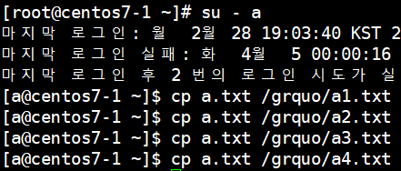 - 사용자 a로 로그인 하여 a.txt 파일 4개 복사 후 확인