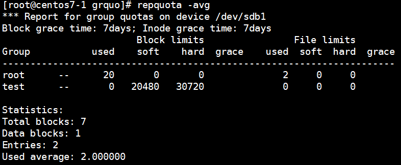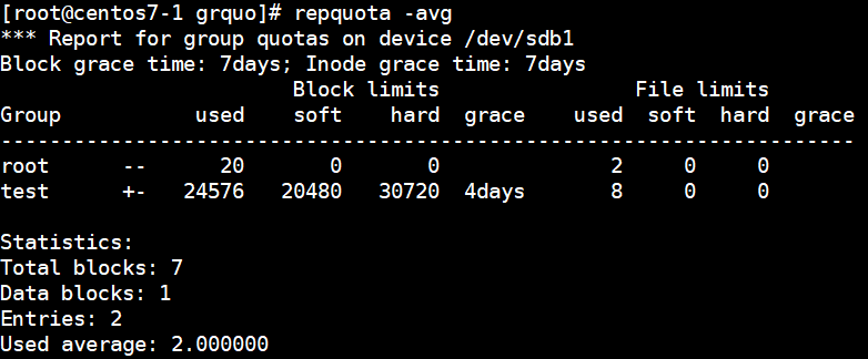 - edquota -g 그룹명 명령어를 이용하여 블록 범위 지정