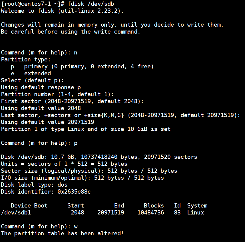 - fdisk 명령어를 통해 sdb 디스크를 파티셔닝 해준다.
