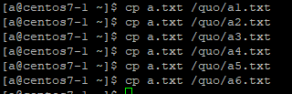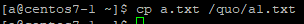 - cp를 통해 a.txt 를 quo 디렉토리에 a1.txt로 저장 후 확인