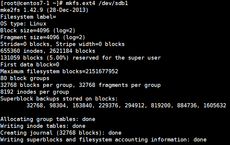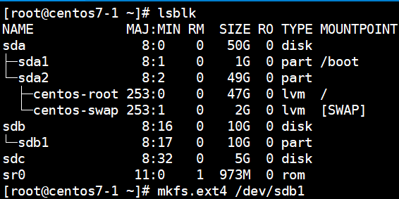 - sdb1의 생성을 확인 후 ext4 파일시스템을 생성한다.