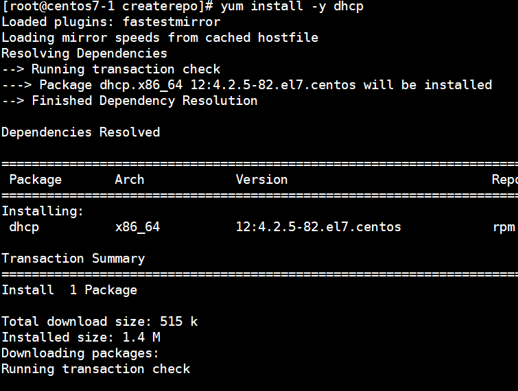 - yum 명령어가 불가능하기 때문에 미리 준비해놓은 createrepo 패키지를 rpm명령어를 이용하여 설치.