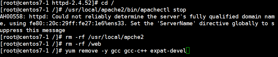 - 수동으로 설치한 경우 아파치 서버를 종료한 후 아파치가 설치된 디렉토리 제거 -> httpd 관련하여 의존 패키지들이 설치된 web 디렉토리 제거 -> 관련 패키지 제거 로 진행