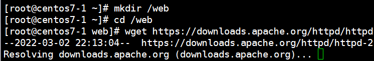 - /web 디렉토리를 생성하고 httpd 설치를 위한 패키지들을 wget을 이용하여 링크를 통해 파일 다운