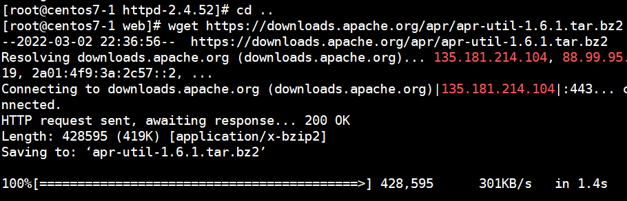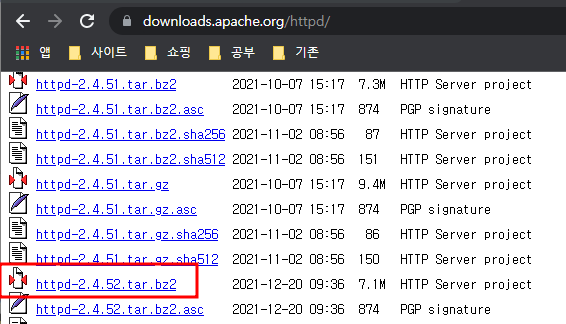 - apache.org 홈페이지를 통해 httpd 2.4.52.tar.bz2 파일과 관련 패키지들의 파일 링크 주소 복사.
