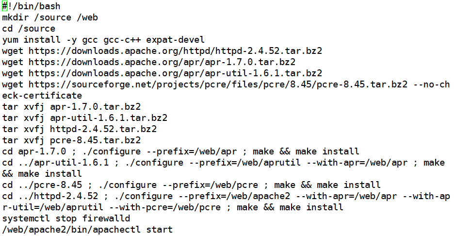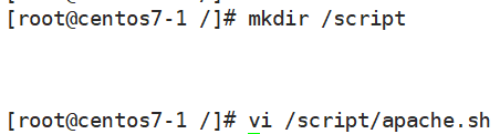 - 스크립트 파일을 생성할 디렉토리를 생성하며, 내부에 apache.sh 쉘을 생성