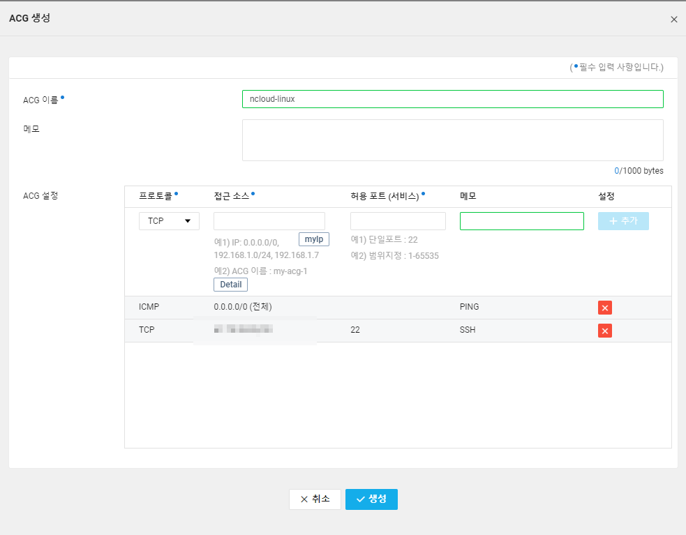 - 네이버에서 제공하는 ncloud를 이용하여 리눅스 서버 생성