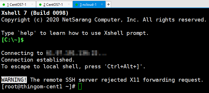 - xshell을 이용하여 공인 ip와 관리자 비밀번호를 이용하면 접속 가능