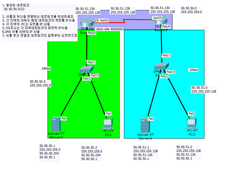 - 라우터 시리얼 인터페이스 설정 : 라우터간의 연결 설정