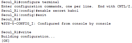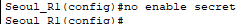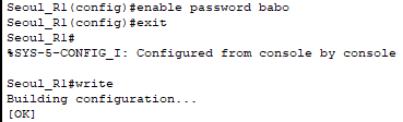 3) enabe secret 명령어로 유저모드->관리자모드 (암호) 패스워드 설정 ( 전역설정모드 )
