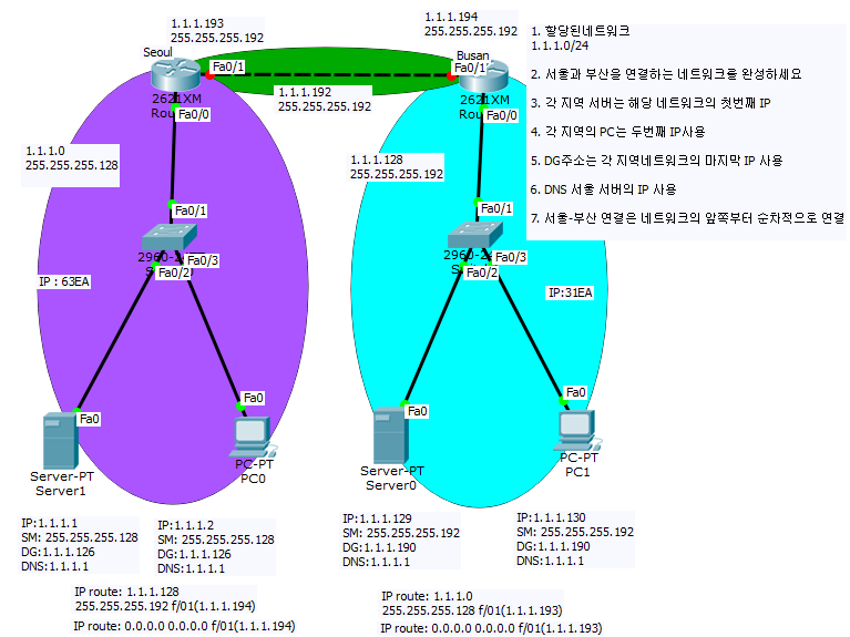 -> IP route 상대방의Gateway NetworkID 상대방의SubnetMask 상대방의routerIP : 다음 네트워크 연결