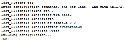 4) exec-timeout 0 0 : 시간이 경과함에 따라 로그아웃됨을 방지