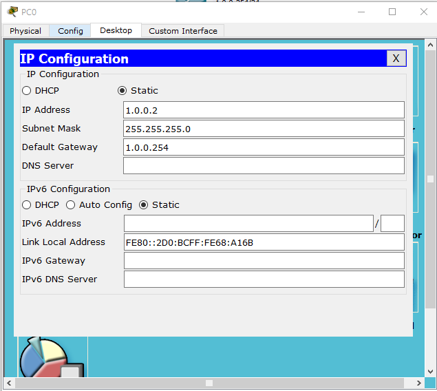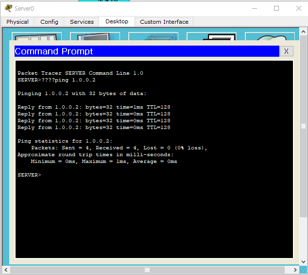 - 각 장치에 아이피 할당. 기기 더블 클릭 -> ipconfig -> 아이피 입력
