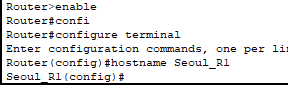 - enable : Router#: Privilege Mode관리자 모드, 특권 모드 (show run 라우터 설정확인, write 저장 등)