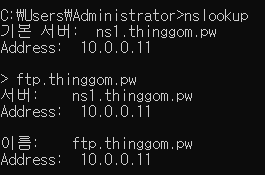- 클라이언트에서 dns를 10.0.0.11로 변경하면 dns 사용이 가능.