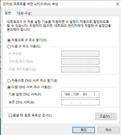 3) DNS ( 고정 IP 설정 or DHCP 서버에서 수신하는 ) 참조