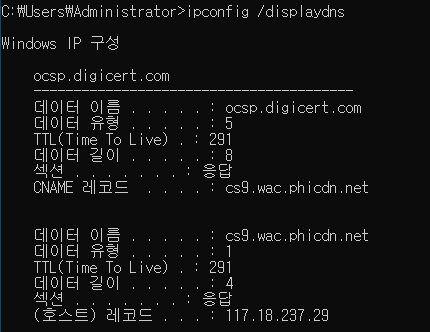 * 윈도우 캐시 확인 ipconfig /displaydns