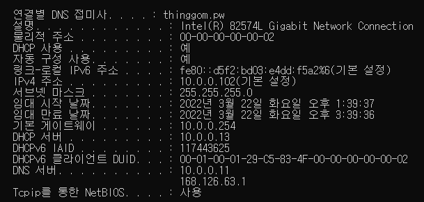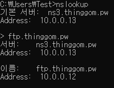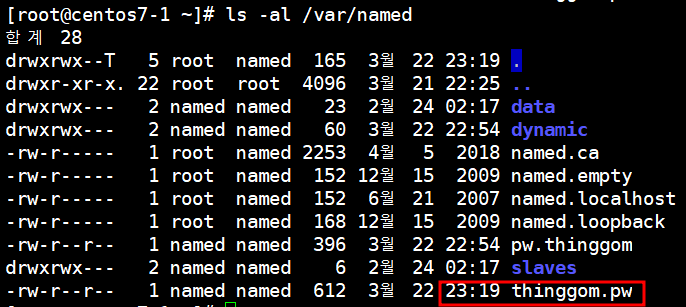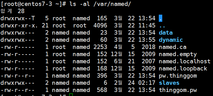 dns 본인으로 변환dns 서비스 설치named.conf 설정, 허용 범위 설정zone 파일설정allow update 부분에 보조 dns 주소 입력영역설정 파일 복사하여 사용thinggom.pw 파일, 각 네임서버, 보조dns에 해당되는 ip도 모두 기입pw.thinggom 파일, 각 네임서버 모두 입력일반 사용자 읽기 권한 부여방화벽 열기서비스 시작nslookup으로 확인