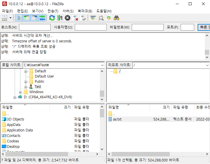 도메인을 다음과 같이 변경하게 되면 정상적으로 실행됨을 보인다.ftp도 정상정으로 적동한다.