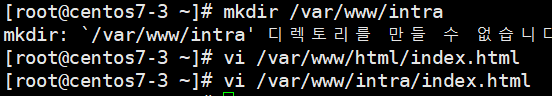 - 세번째 리눅스도 앞 인트라와 같이 디렉토리를 생성하고 index.html 을 생성.