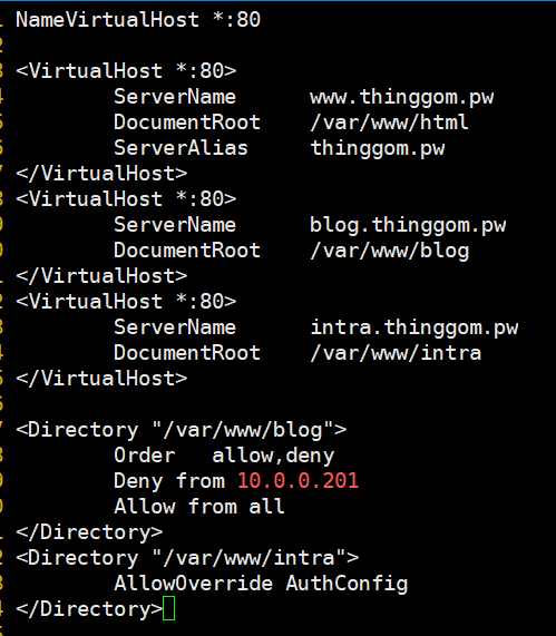 - 세번째 리눅스에서 httpd.conf를 통해 가상 호스트 설정.
