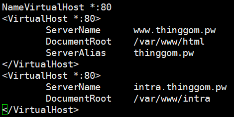 - 첫번째 리눅스에서 httpd.conf를 통해 가상 호스트 설정.