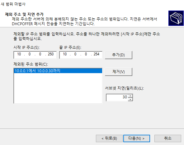 (2) 두번째 리눅스에도 DHCP 동일하게 적용하되 지연시간 30초 추가