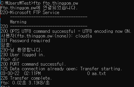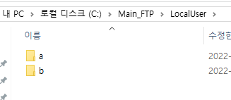 - main ftp과 cloud ftp 폴더 생성 및 사용자 폴더 생성