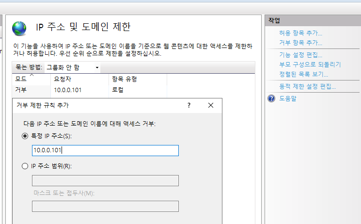 - IP 제한 : IP주소 및 도메인 제한을 통해 설정.