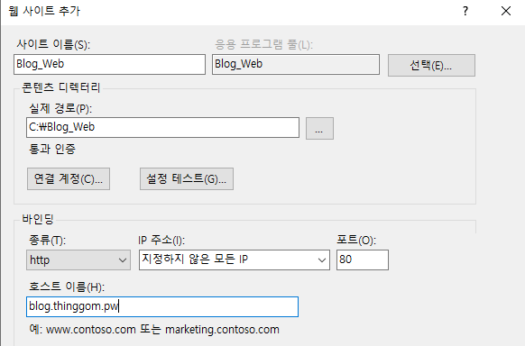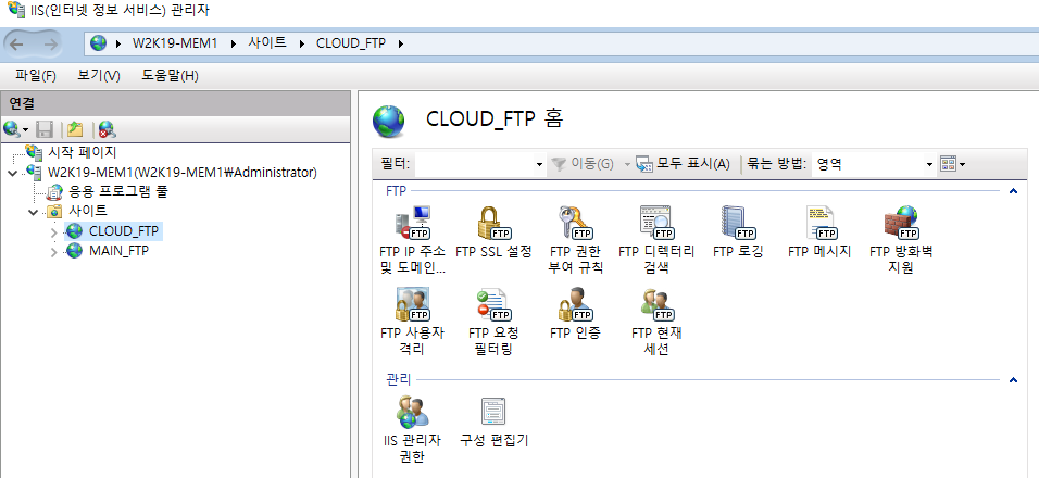 - IIS를 통해 생성해놓은 ftp경로로 ftp 사이트 생성, cloud ftp의 경우 바인딩으로 호스트 지정.