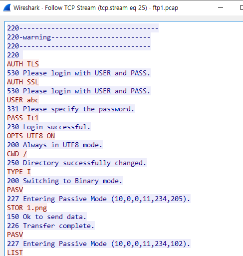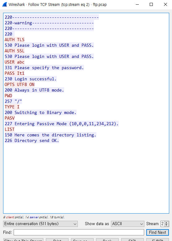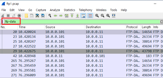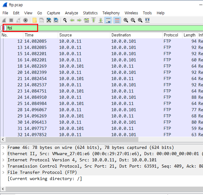 - 파일 실행 후 위에 ftp를 검색하면 ftp 관련 패킷이 출력